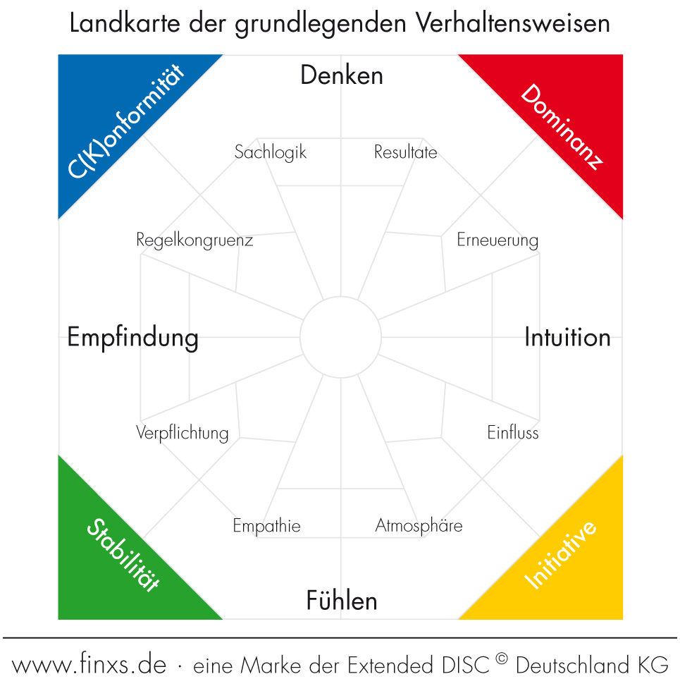 Extended DISC® ist die professionelle Erweiterung des klassischen DISC-Modells von W. M. Marston und C. G. Jung. Es ist ein höchst innovatives System zur Analyse von Wahrnehmung und Wirkung, Fähigkeiten und Kompetenzen, um das volle Potential zu entfalten.